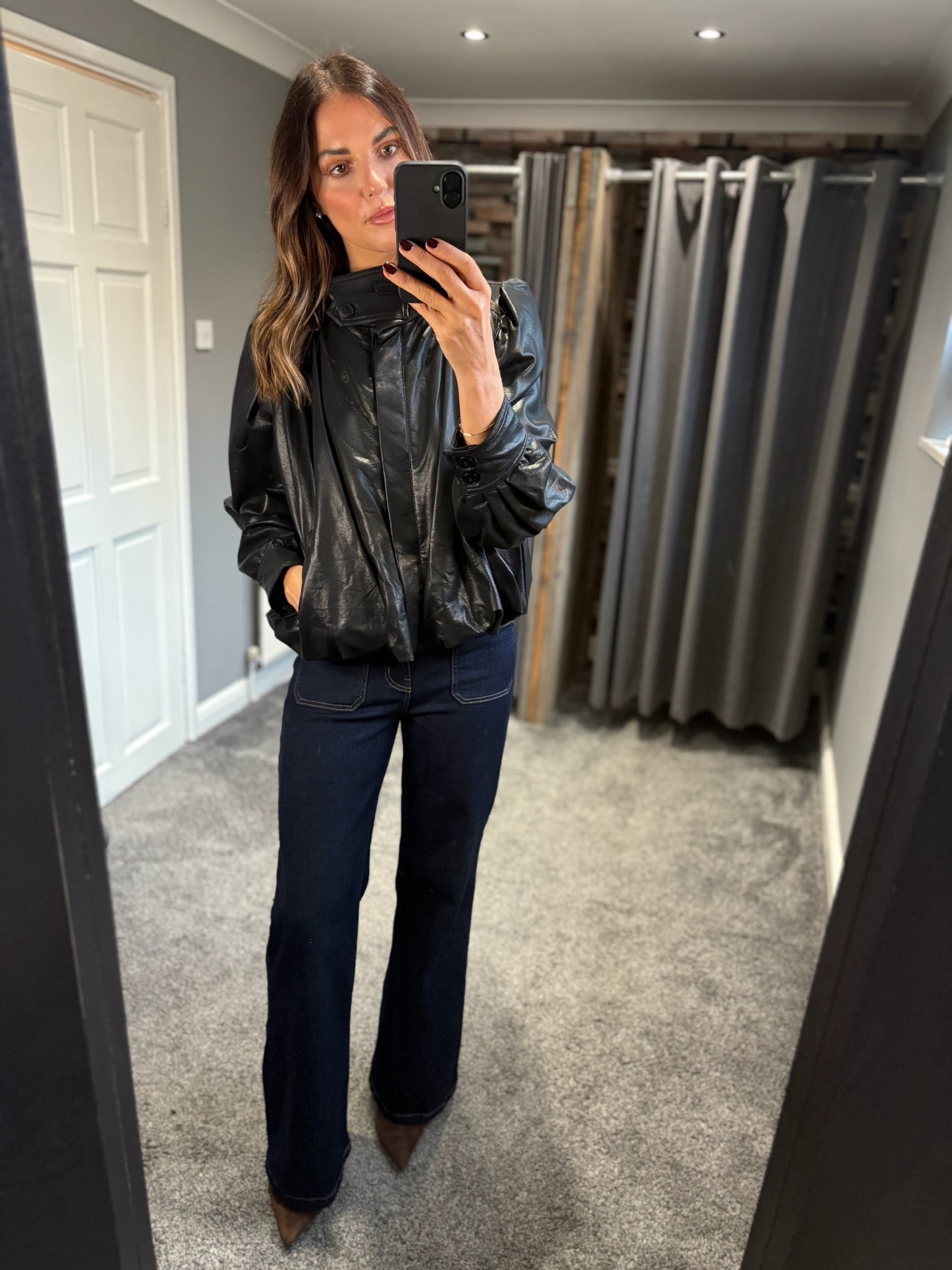 PU Bubble Hem Jacket